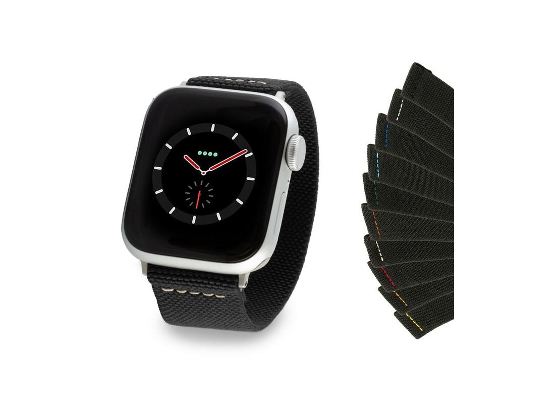 Make a distinctive style statement with the Elastic Nylon/Fabric Watch Strap – Contrasting Stitching by ABP Concept. Combining comfort and modernity, it features a flexible elastic weave enhanced by a subtle color contrast, ideal for adding an elegant graphic touch to your Apple Watch.