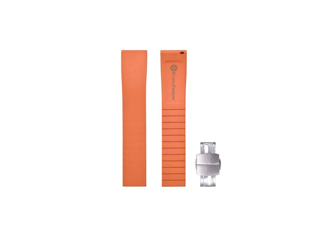 Designed to combine robustness, aesthetics, and comfort, the orange KronoKeeper rubber watch strap with deployant clasp is intended for watch enthusiasts who seek to blend performance with style. Crafted from high-quality FKM rubber—renowned for its exceptional durability and resistance to extreme temperatures—this strap is an ideal choice for all sports or dive watches.