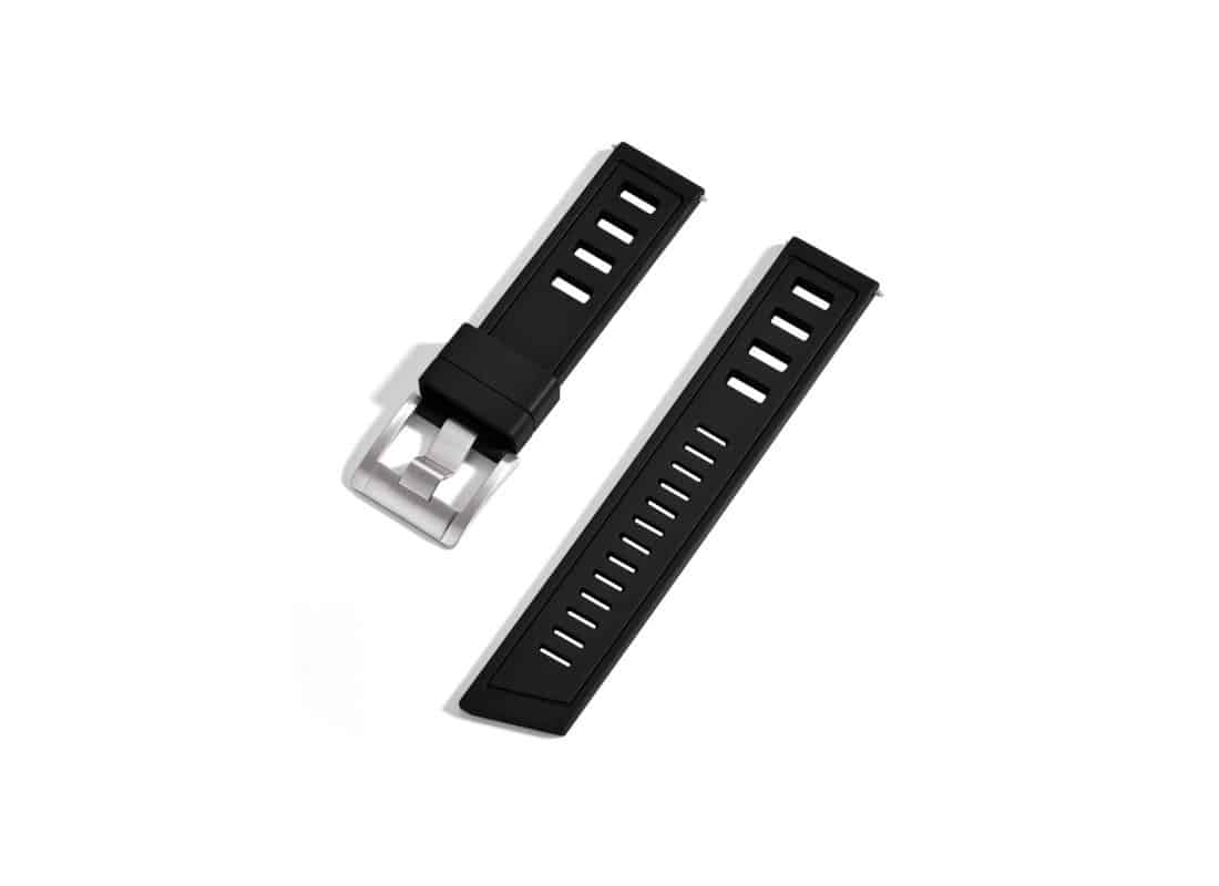FKM (fluoroelastomer), a material renowned for its resistance to chemical agents, heat, and saltwater, is widely used in the watchmaking industry for technical straps. Unlike silicone, often criticized for attracting dust and lint, this specific rubber remains clean and pleasant to the touch throughout the day. It is also more flexible than natural rubber or TPU, providing an unparalleled feeling of lightness and comfort on the wrist.