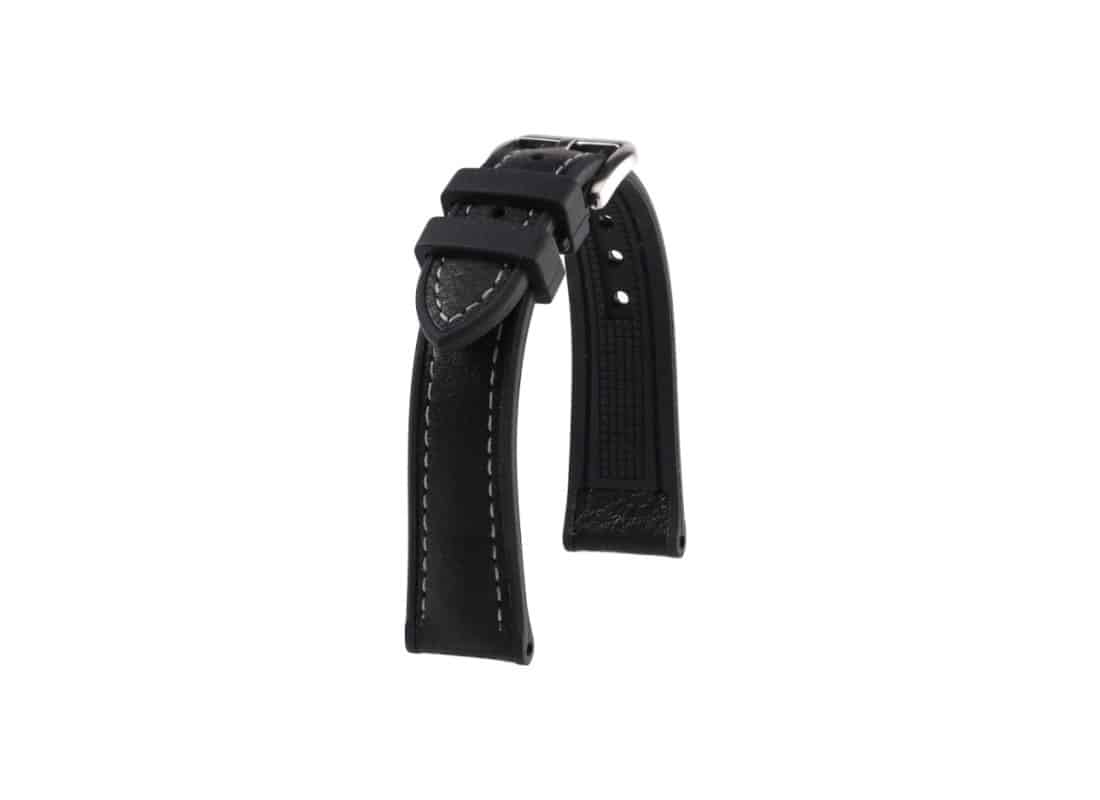 Designed for watch enthusiasts seeking a highly technical strap that combines bold design with extreme durability, the KronoKeeper Godefroy black leather watch strap stands out for the exceptional quality of its materials and its wearing comfort. Conceived for the most demanding uses, this hybrid strap combines the suppleness of water-repellent Zermatt leather with the robustness of FKM rubber, recognized in the aeronautical and nautical industries for its ability to withstand extreme conditions.