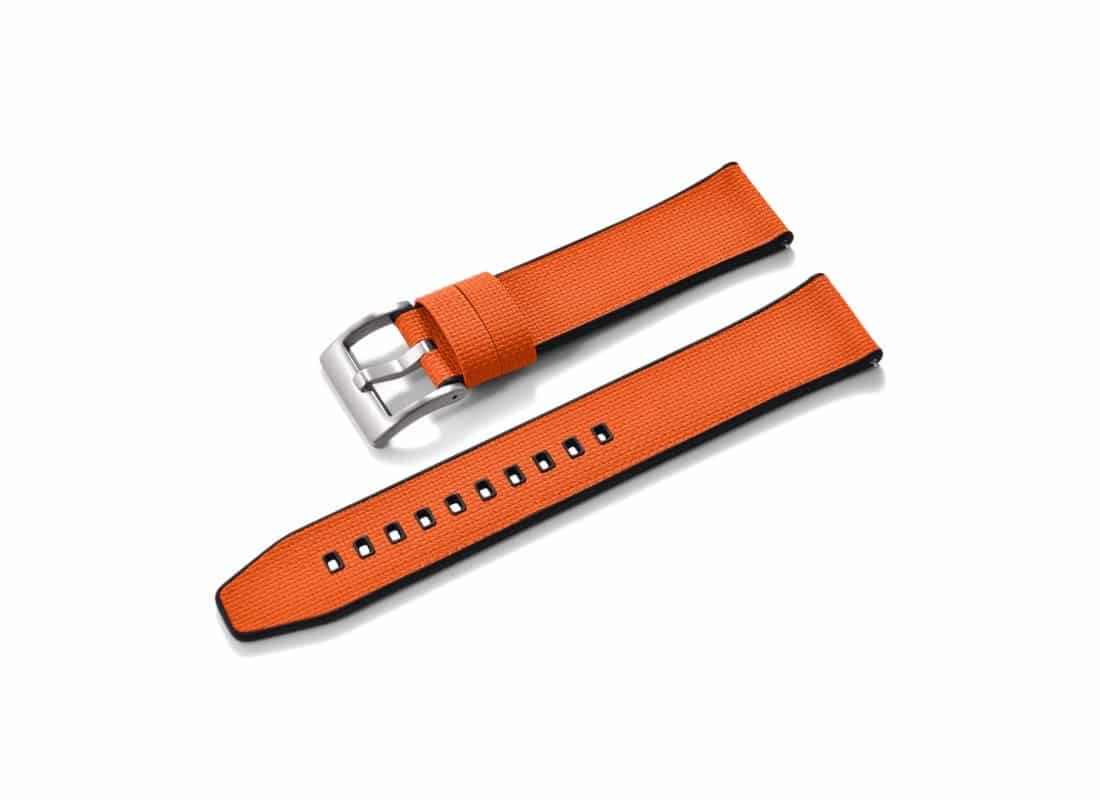 With its intense orange hue, this model adds a touch of vibrancy and originality to your watch. A bold color, perfect for a decidedly sporty look or to add a pop of color to a subdued case. The double-layer finish ensures enhanced resistance and structures the strap for a perfect fit on the wrist, regardless of your activities.