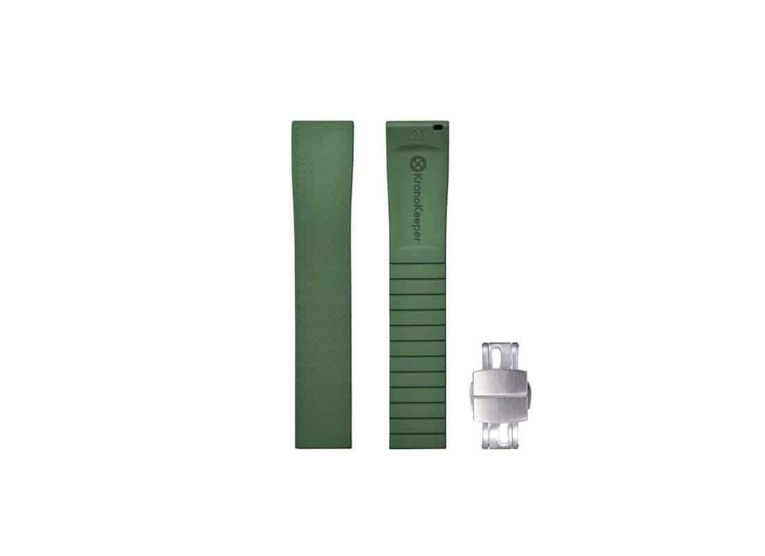 Que ce soit pour une utilisation sportive, une activité nautique ou un usage urbain quotidien, ce bracelet en caoutchouc vert KronoKeeper deviendra rapidement un accessoire indispensable à votre montre. Il représente un excellent compromis entre esthétique, confort et résilience.