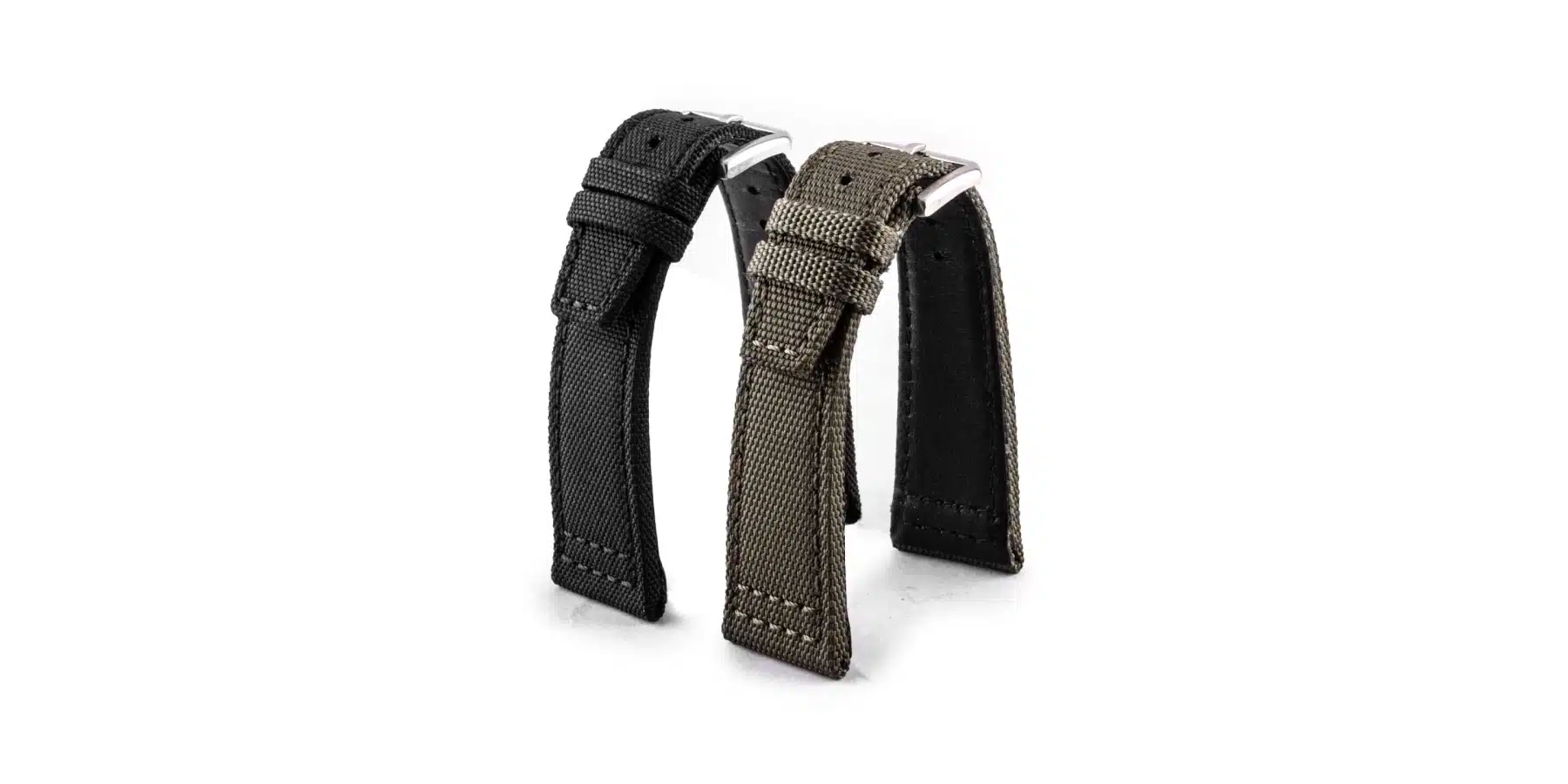 Son revêtement textile type Cordura offre un rendu technique et moderne, tout en garantissant une excellente résistance à l’usure, aux frottements et aux conditions du quotidien. La combinaison noir profond et kaki renforce son caractère outdoor et s’harmonise idéalement avec les cadrans noirs, anthracite ou vert militaire.