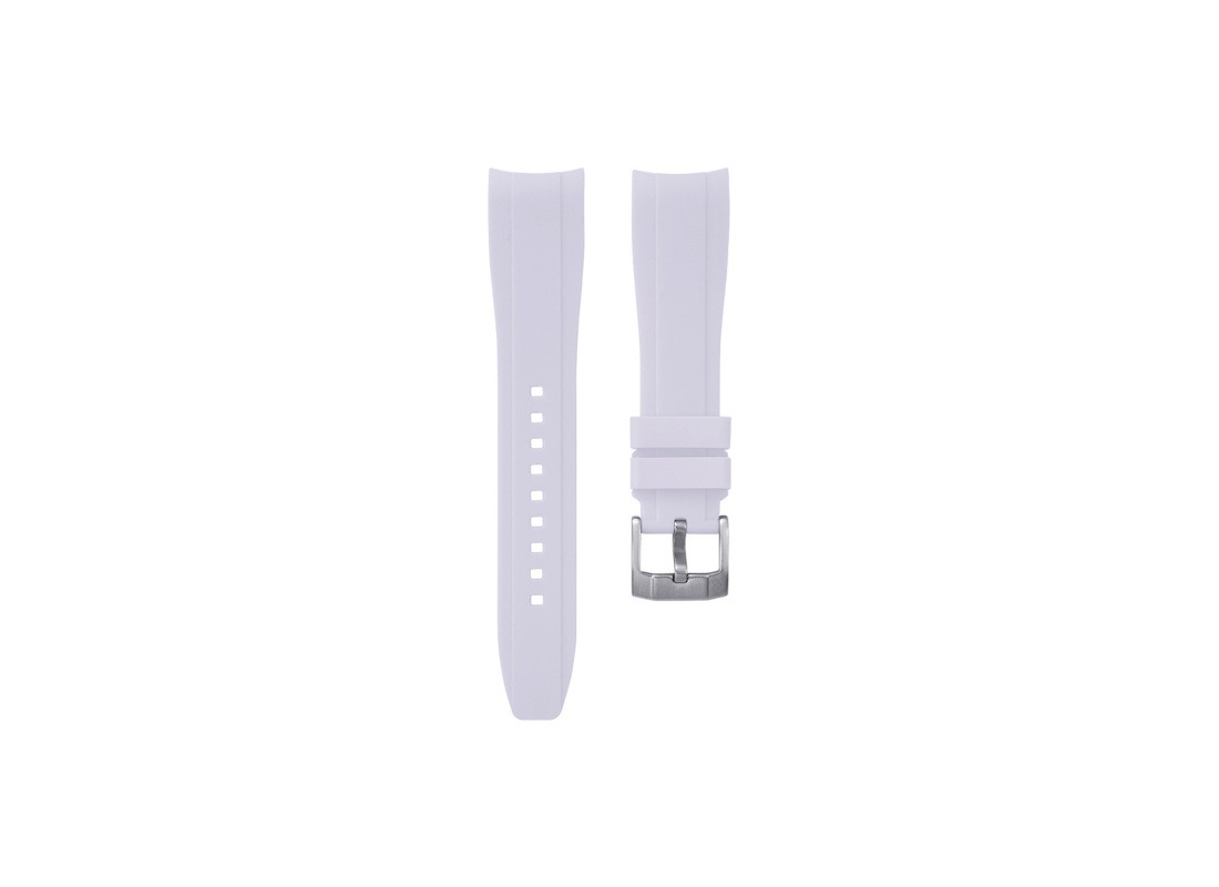 Le bracelet en caoutchouc blanc intégré KronoKeeper est spécialement développé pour les montres à entre-corne de 22 mm, offrant un rendu parfaitement ajusté et un style sportif et élégant. Grâce à son design intégré, il s’insère de manière fluide entre les cornes, sans espace ni discontinuité visuelle.