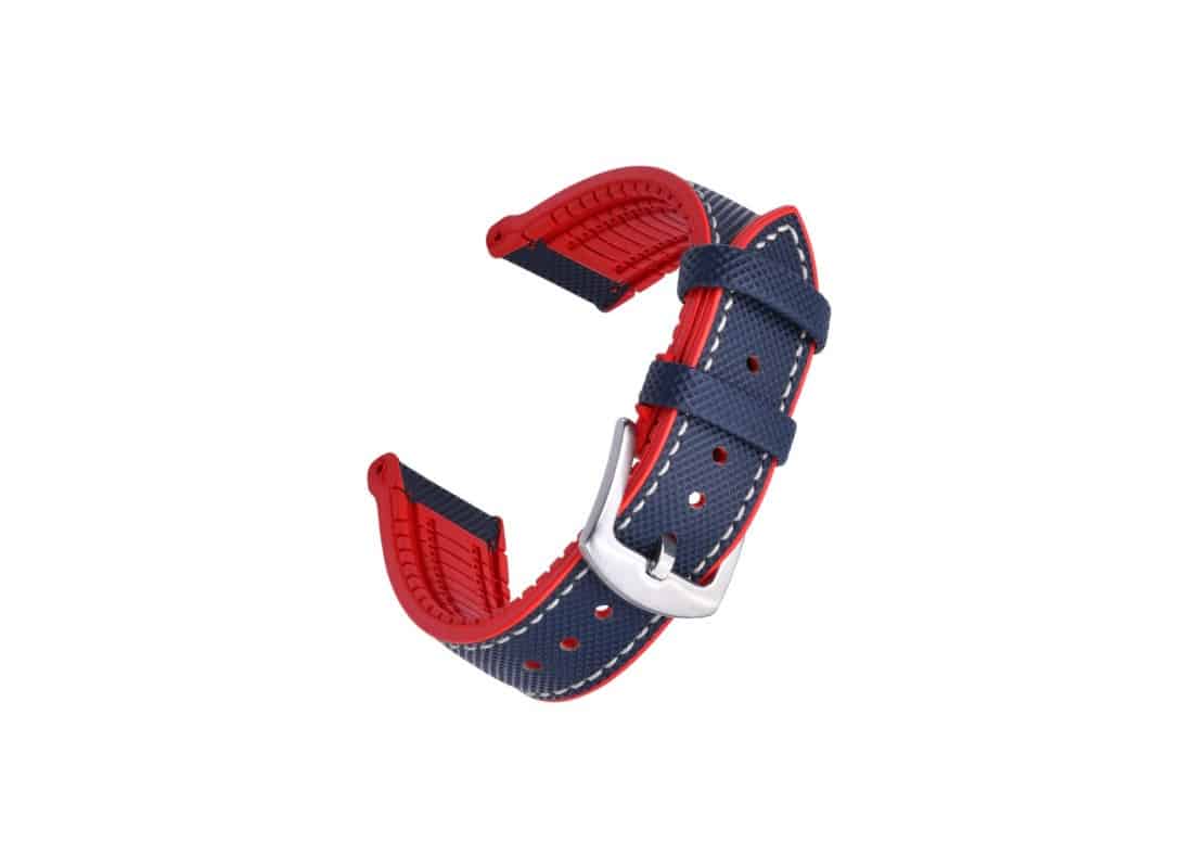 Conçu pour les passionnés d’horlogerie à la recherche d’un accessoire à la fois résistant, confortable et élégant, le bracelet KronoKeeper « Jules » en caoutchouc FKM est l’allié idéal pour accompagner toutes vos montres sportives. Proposé ici dans une teinte rouge intense associée à une finition noire subtile, ce modèle se distingue par son esthétique marquée et son haut niveau de performance technique.